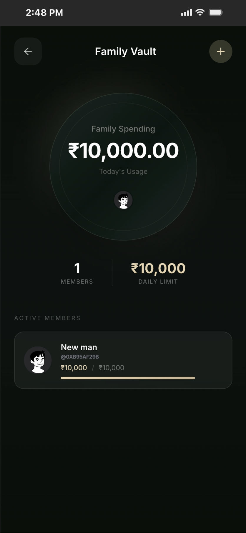 Our Family Vault feature lets you create shared wallets with customizable spending limits — perfect for managing household expenses.